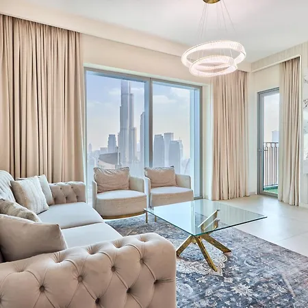 Luxury 4 Bedroom High-Floor Apartment, Spectacular Burj Khalifa & Fountain Views, Steps Away From Dubai Mall - Downtown Dubai By Stayfinity biedt uitzicht op de stad en heeft een patio, een balkon en een zitruimte uitgerust met airconditioning. De 3-badkamer accommodatie heeft een bidet, een apart toilet en een douche voor uw comfort. Daarnaast vindt u er badlakens.